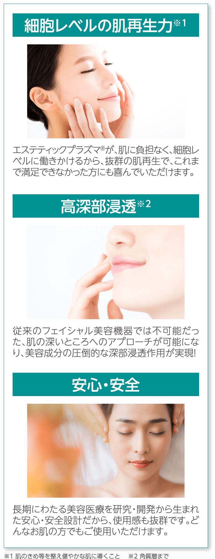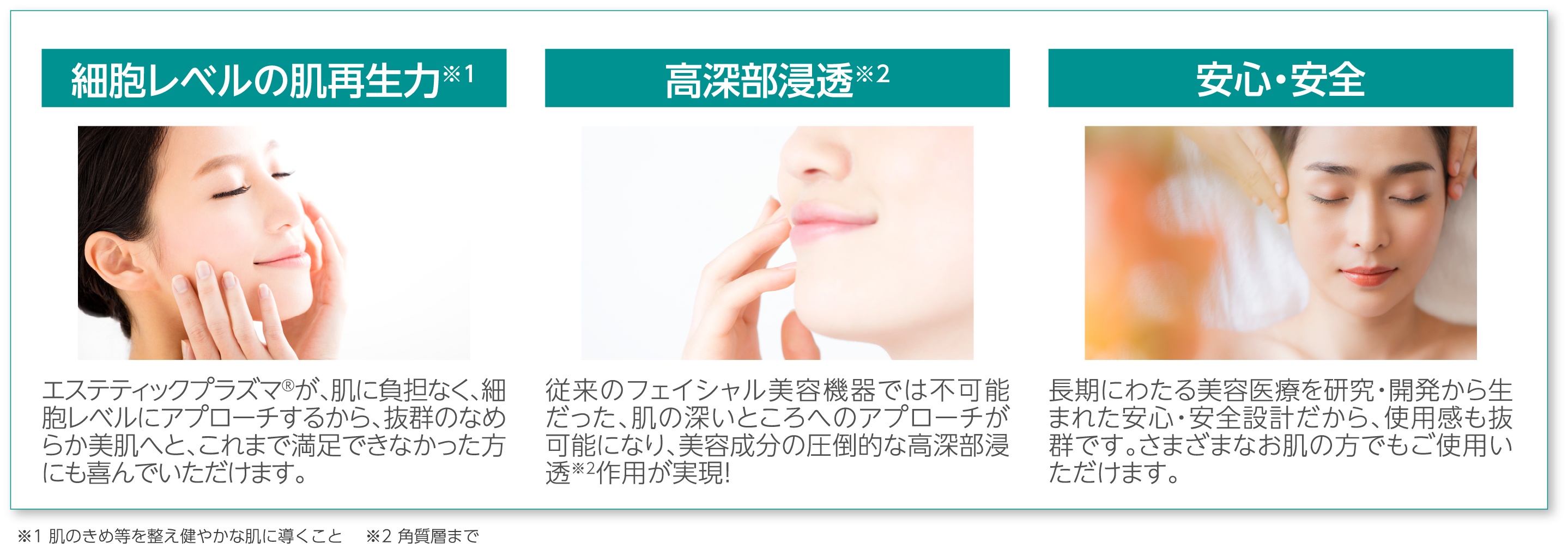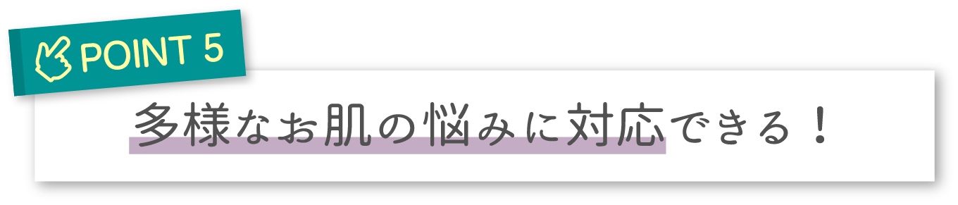ニキビ、シミ、シワ、たるみ、乾燥、毛穴の開き、お肌のゴワつき等、様々な肌トラブルに効果的です。